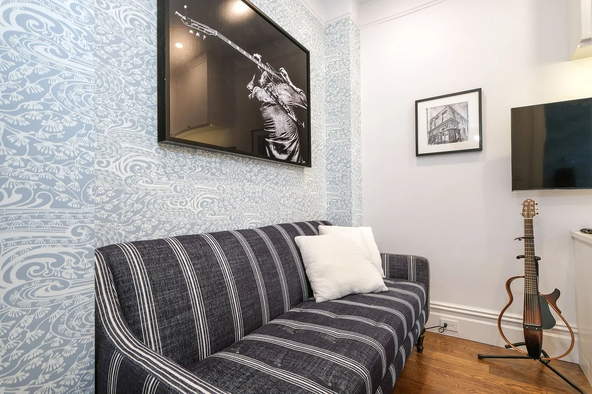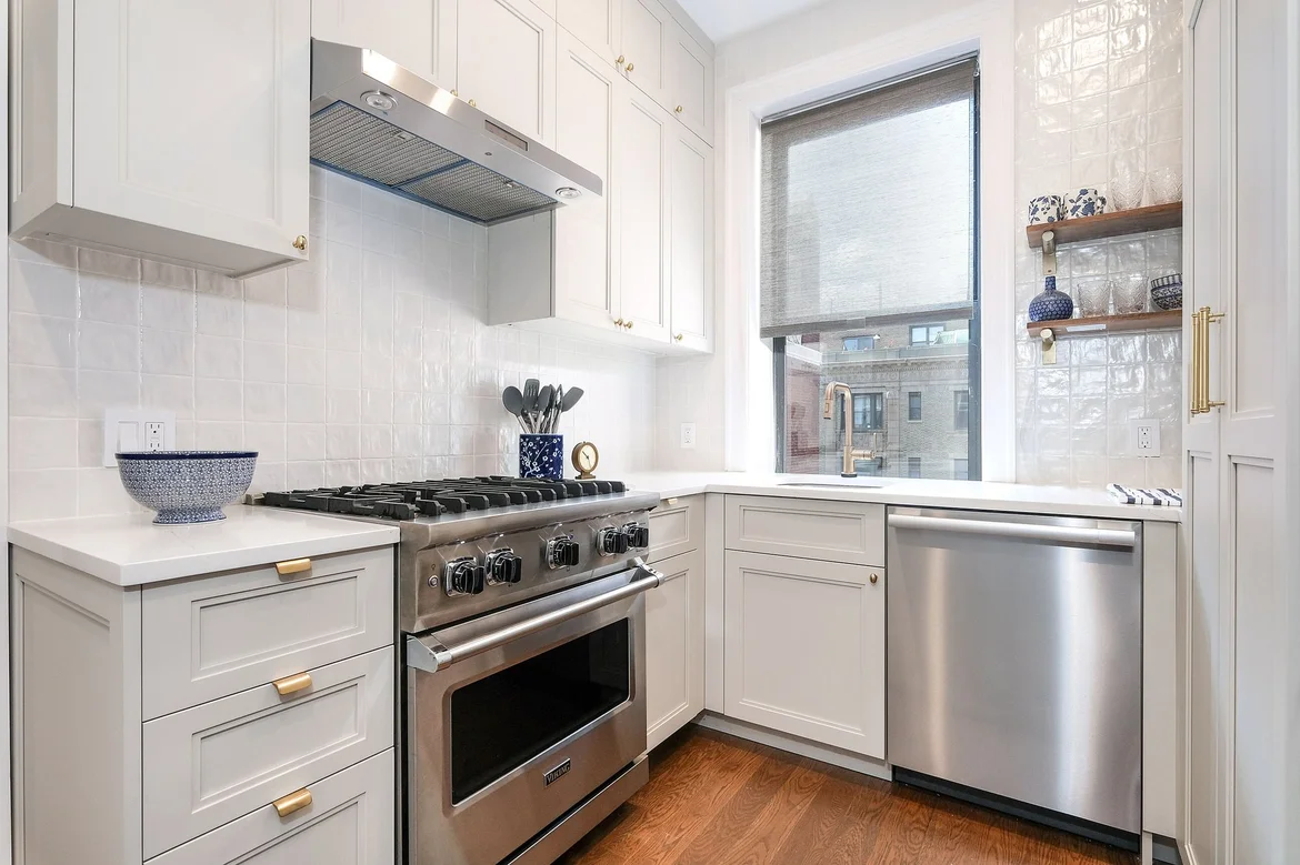 The apartment now feels brighter, calmer, and far more functional. The custom built-in turned an empty wall into a design feature with real storage, the bathroom reads like a boutique hotel, and the kitchen looks crisp and updated without losing the home’s original charm. Overall, it’s a polished, move-in-ready space that still feels timeless.