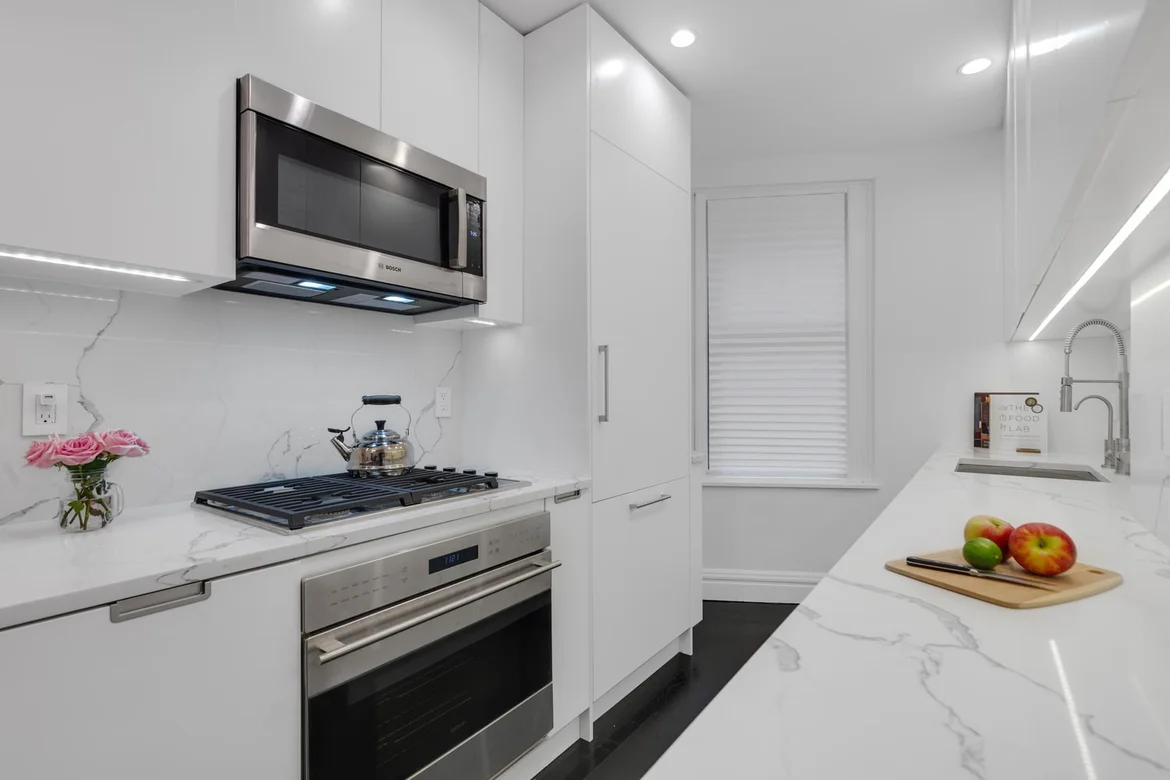 Completely remodeled the kitchen, replacing outdated cabinetry with full-height custom units