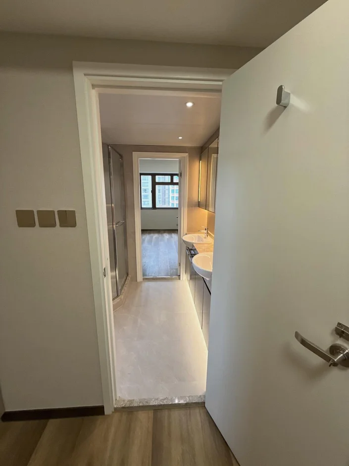 Bathrooms were finished with large-format porcelain tiles, walk-in glass showers, and custom vanity units with integrated lighting. The design prioritizes clarity, ease of maintenance, and a spa-like atmosphere. -