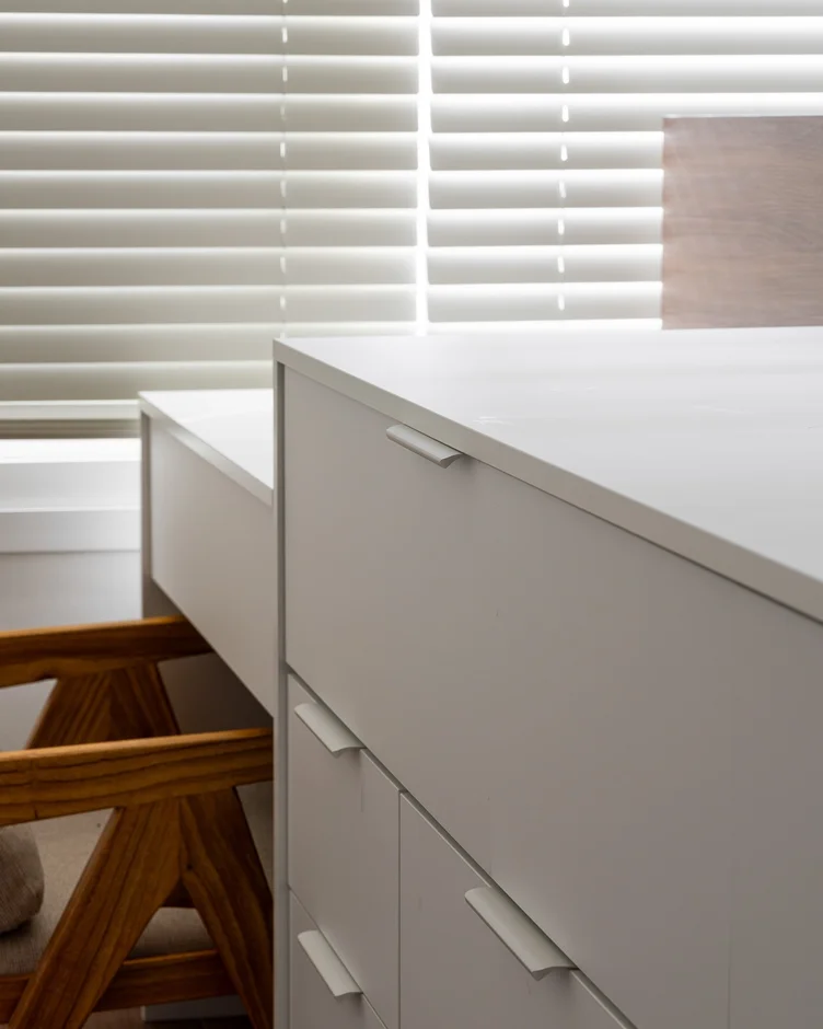 The interior is designed in a neutral color palette, combining warm wood textures with clean, light surfaces. All design and construction decisions were focused on comfort, ease of use, and a clear architectural aesthetic suitable for long-term living.