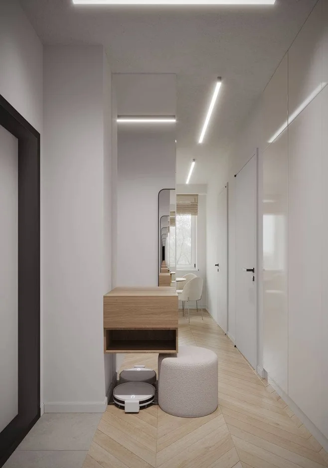 For this apartment renovation, our team delivered a complete interior transformation, turning a dated living space into a modern, bright, and highly functional home. The project focused on clean architectural lines, integrated lighting, custom-built furniture, and durable, high-quality finishes throughout the hallway, bathroom, and bedroom.