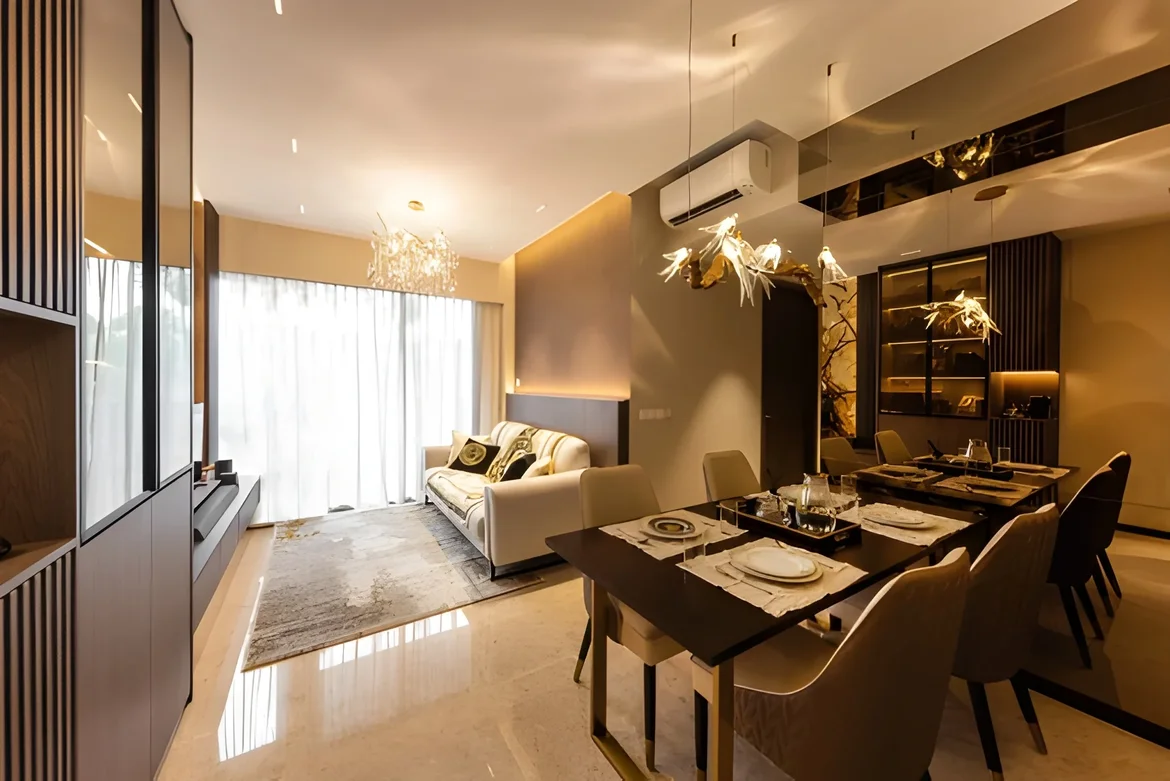 Created a seamless dining area with mirrored surfaces to enhance depth and light