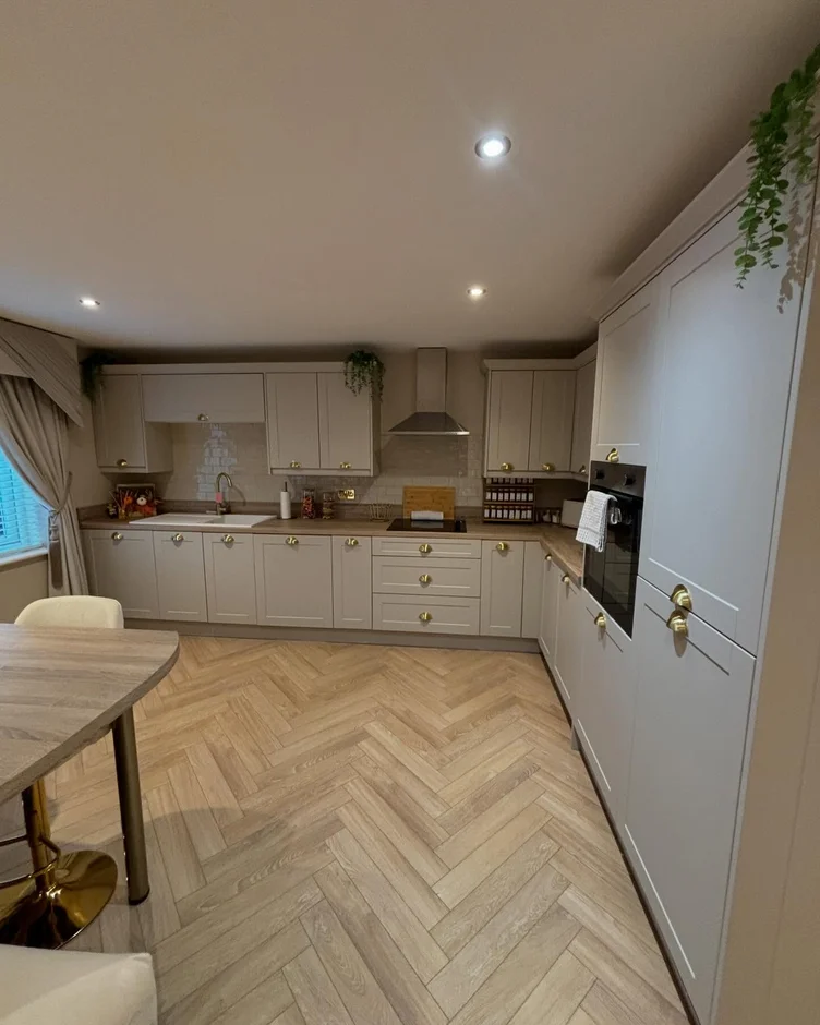 Installed a fully custom kitchen featuring shaker-style cabinetry in soft neutral tones with brushed brass hardware. Durable worktops, integrated appliances, and a well-organized layout provide both visual clarity and practical usability. -