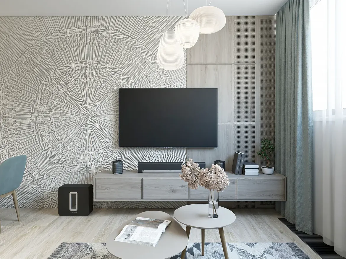 In the living room and bedroom, we installed decorative wall paneling and a custom textured accent feature wall to add depth and architectural character. These elements serve as focal points while maintaining a clean, minimalist aesthetic.
