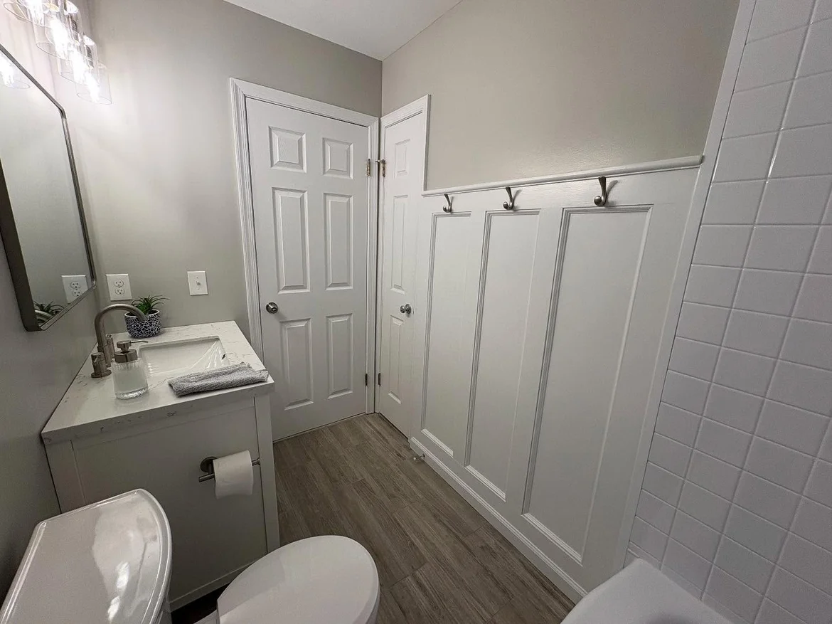 Upgraded the outdated tile to waterproof wood-look flooring, adding warmth and a modern touch. - Refreshed Bathtub Area