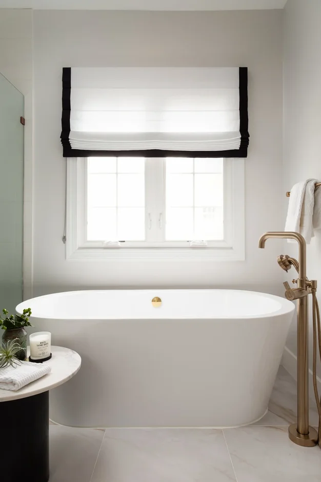 A new freestanding bathtub was installed as a focal point of the bathroom, paired with a floor-mounted faucet. This upgrade adds a spa-like feel and enhances overall comfort and aesthetics.