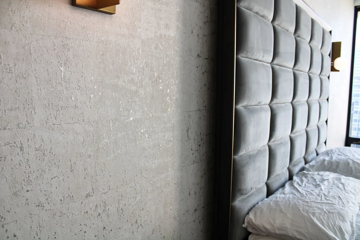 All wall surfaces were fully prepared, leveled, and refined before applying a modern decorative plaster finish. This textured wall treatment adds subtle depth and visual interest while maintaining a clean, minimalist appearance.