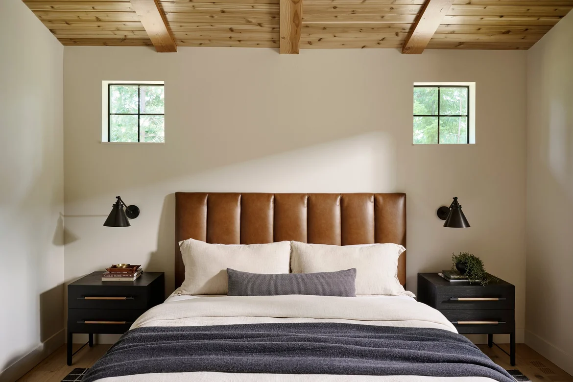 Electrical systems were updated to support a new lighting layout. Modern wall-mounted reading sconces were installed on both sides of the bed, along with a contemporary suspended ceiling fixture to provide balanced ambient and task lighting.