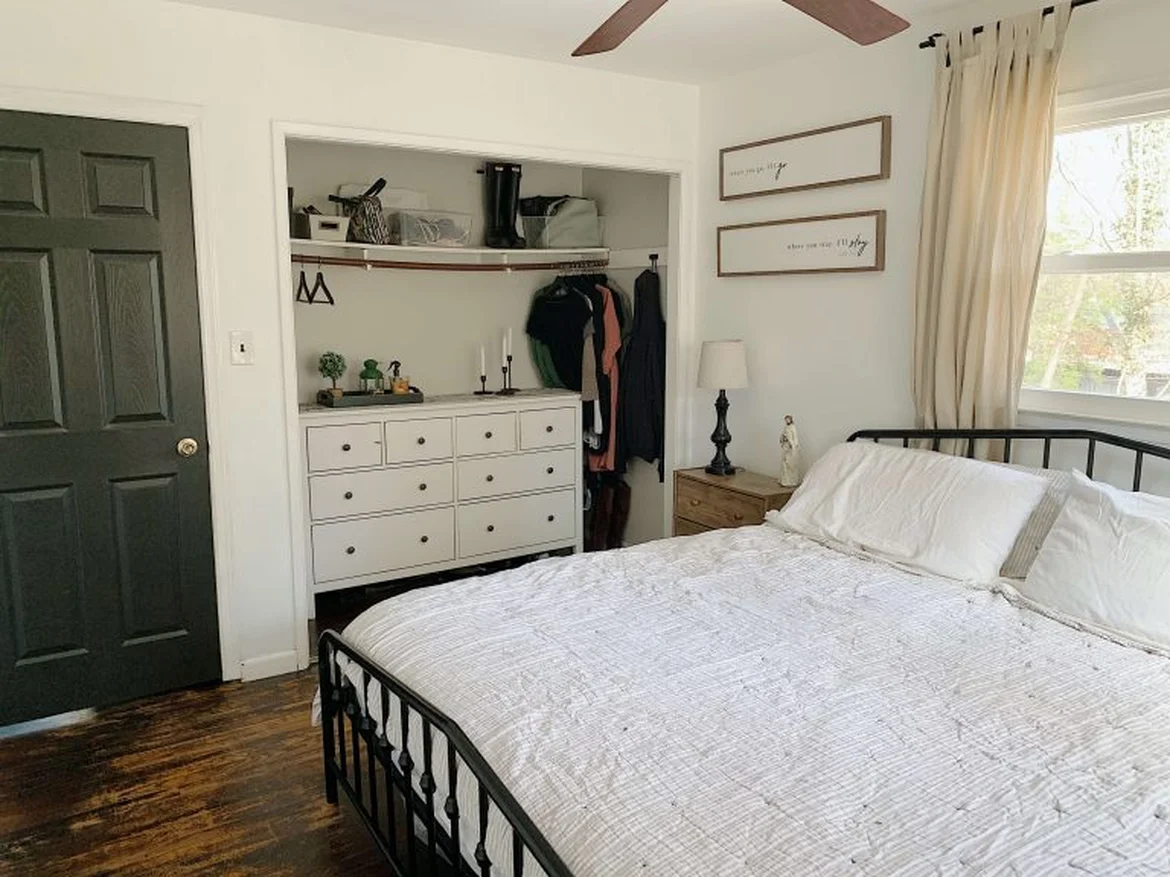Softened the space with neutral bedding, creating a clean, cozy, hotel-like feeling.