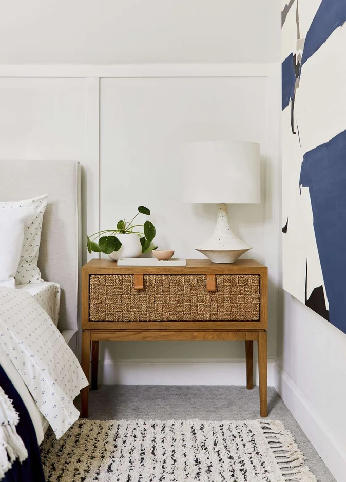 With new lighting, curated décor, and a harmonious palette, the bedroom now feels: