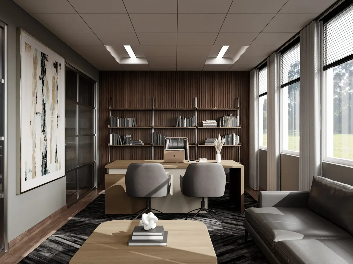 The original space lacked cohesion and presence. Finishes felt generic, lighting was flat, and the layout didn’t fully support executive-level work, meetings, or comfort. Despite good natural light, the office didn’t reflect a modern leadership environment.
