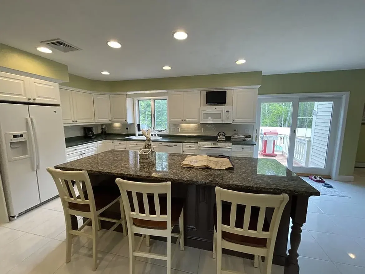 Kitchen Overhaul: Replaced old cabinets with sleek, modern white units and installed a stunning marble central island with integrated appliances.