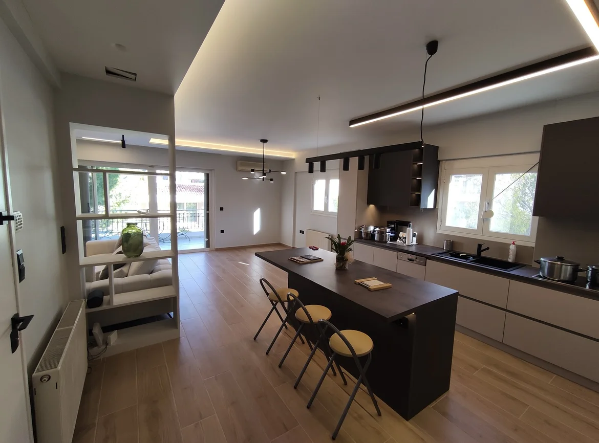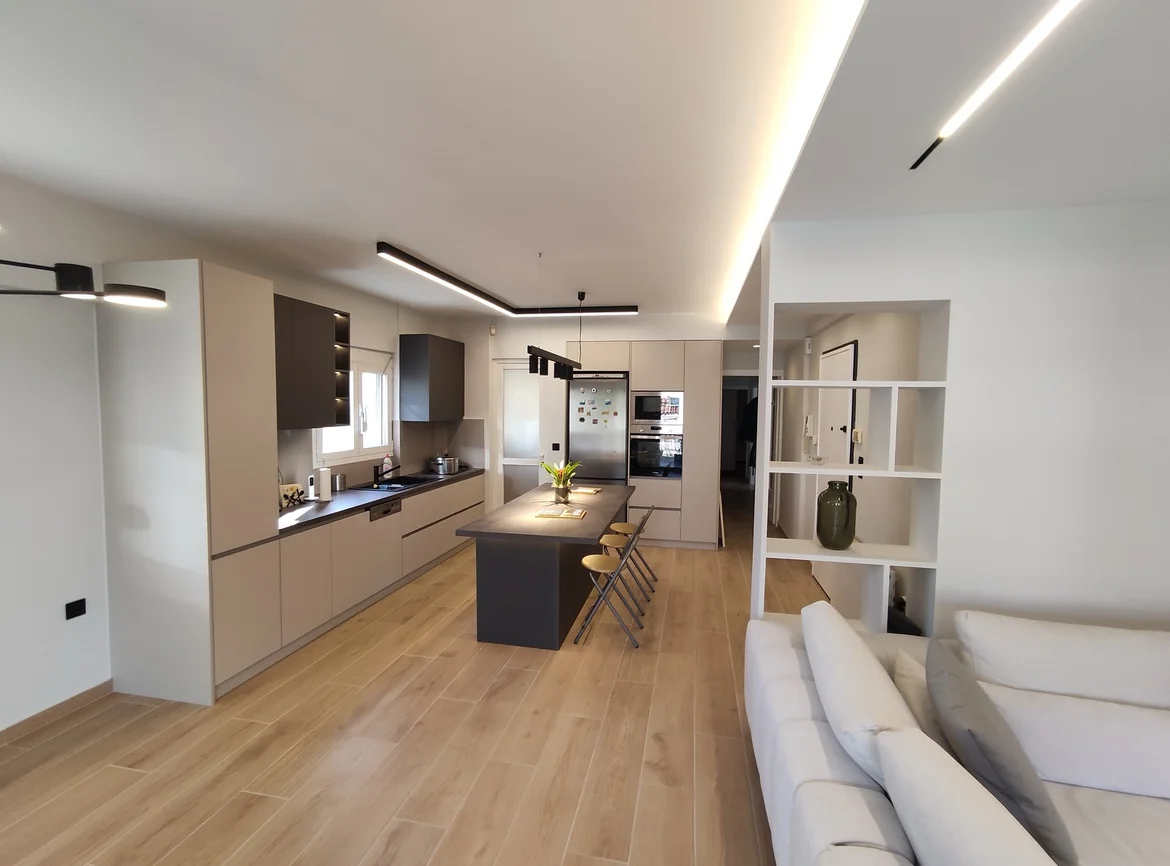 This full home renovation reimagines the interior with a strong focus on modern aesthetics, functionality, and cohesive design. Open living spaces, clean architectural lines, and a neutral color palette are combined with warm flooring and carefully planned lighting to create a comfortable yet visually striking residential environment.