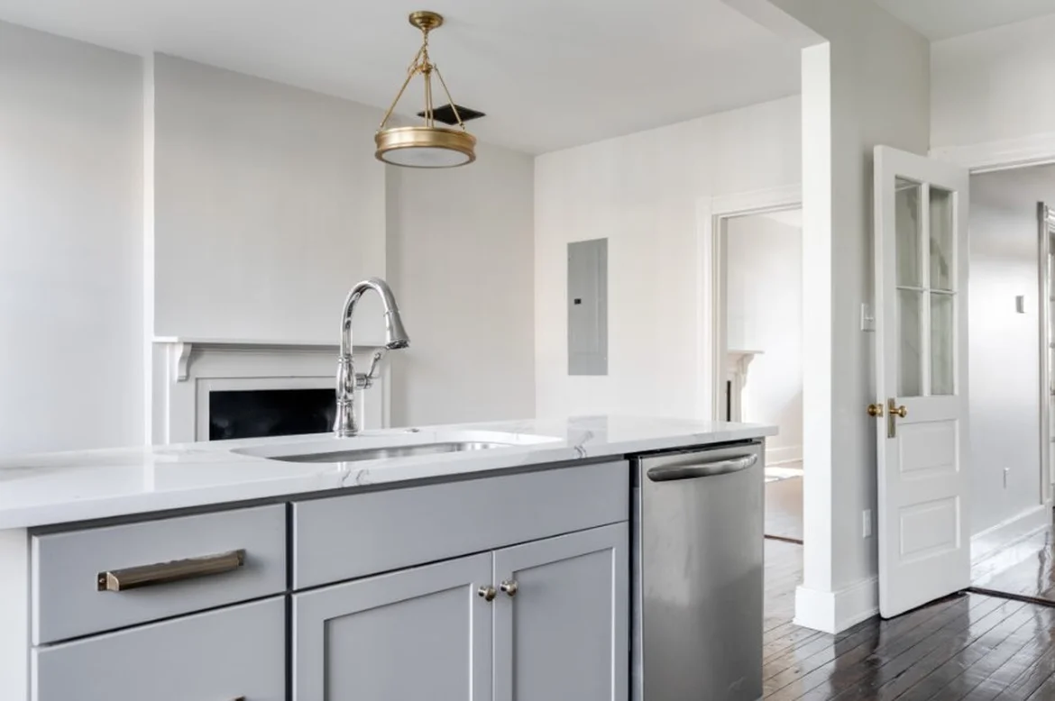 Added quartz countertops and a central island