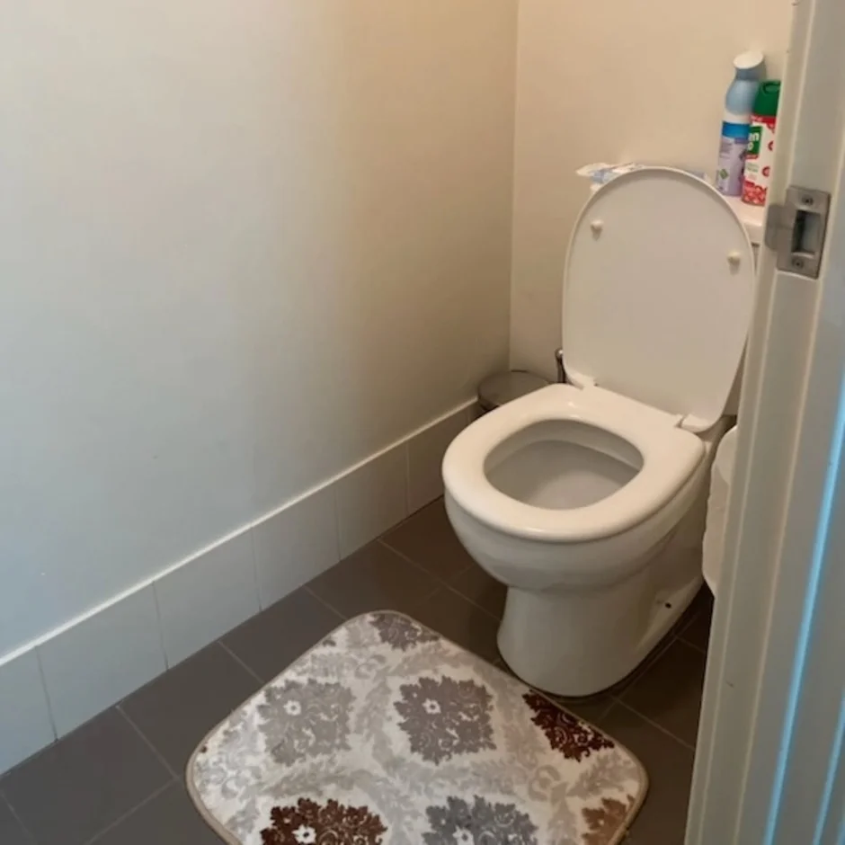 Installed a modern close-coupled toilet positioned to maximise space efficiency and ease of use. -