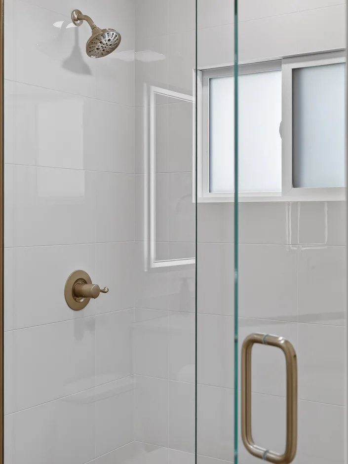 Fully renovated bathrooms featuring walk-in glass showers, freestanding tubs, floating vanities, and premium fixtures. Clean tile work and refined finishes create a spa-inspired experience. -