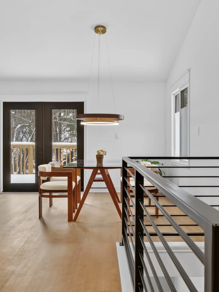 Designed bright, open living and dining spaces that promote natural flow and functionality. Large windows and glass doors allow abundant daylight while maintaining a strong indoor-outdoor connection. -