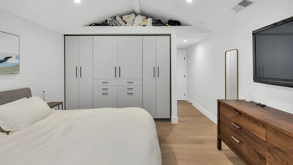 Reimagined the primary bedroom with calming tones, minimalist décor, and new recessed lighting to create a tranquil sanctuary. -
