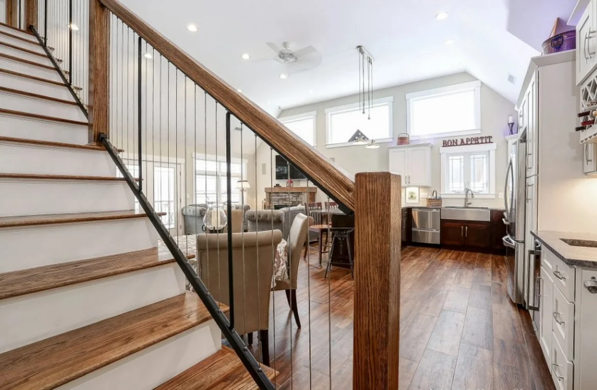 Upgraded staircases and railings to open visual space and improve safety.