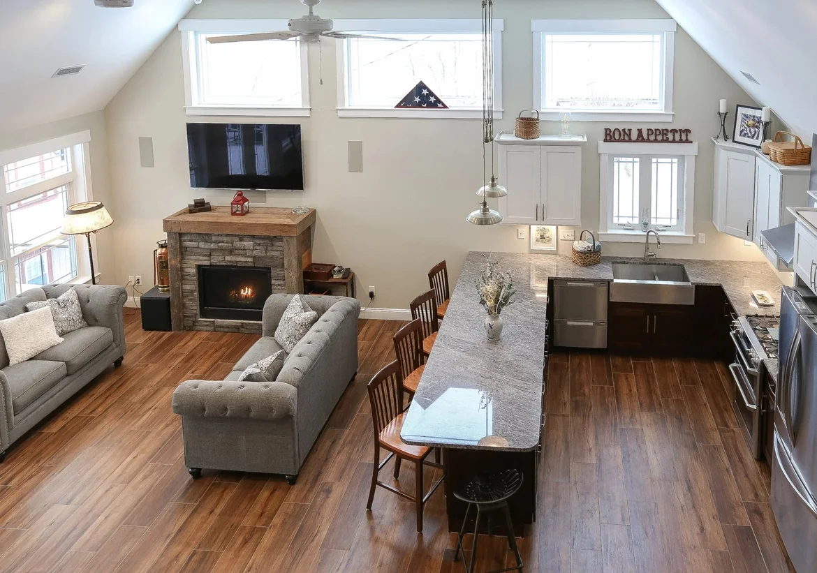 Removed interior walls and structural barriers to create an open, connected main living area.