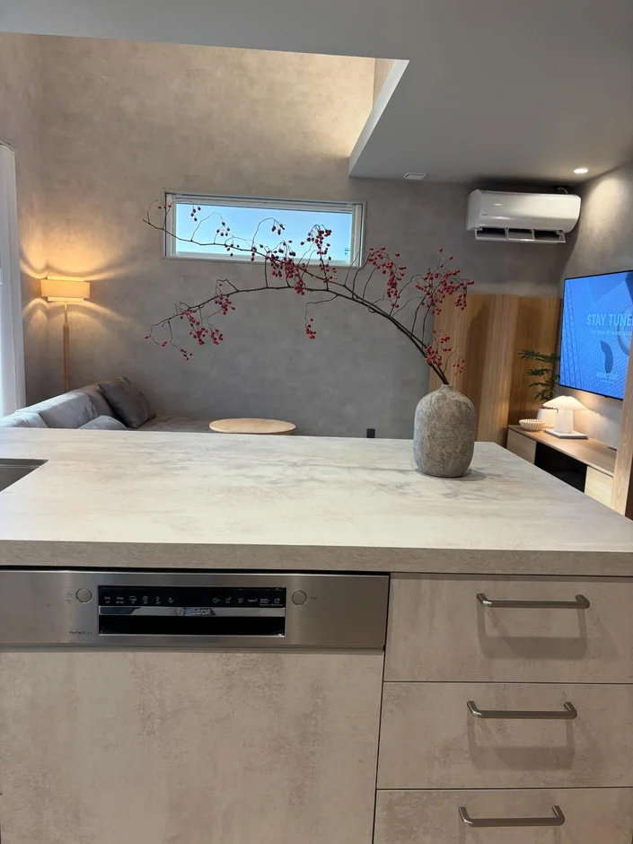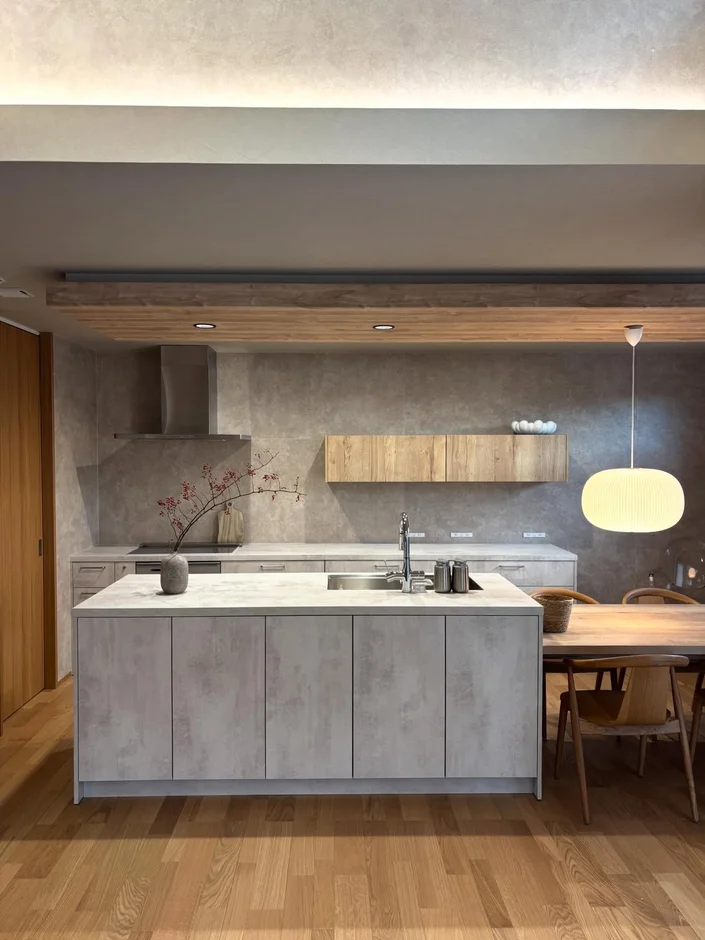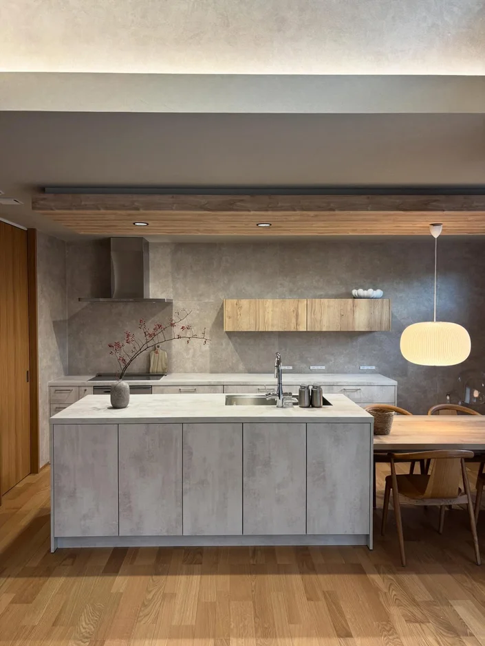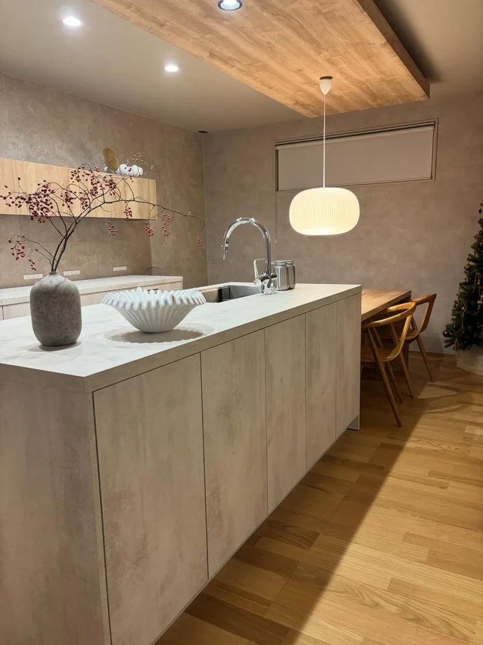 This project presents a refined open-plan interior that seamlessly blends the kitchen, dining, and living areas into a calm, cohesive space. The design emphasizes natural materials, soft textures, and carefully layered lighting to create a warm, contemporary atmosphere with a strong sense of balance and comfort.