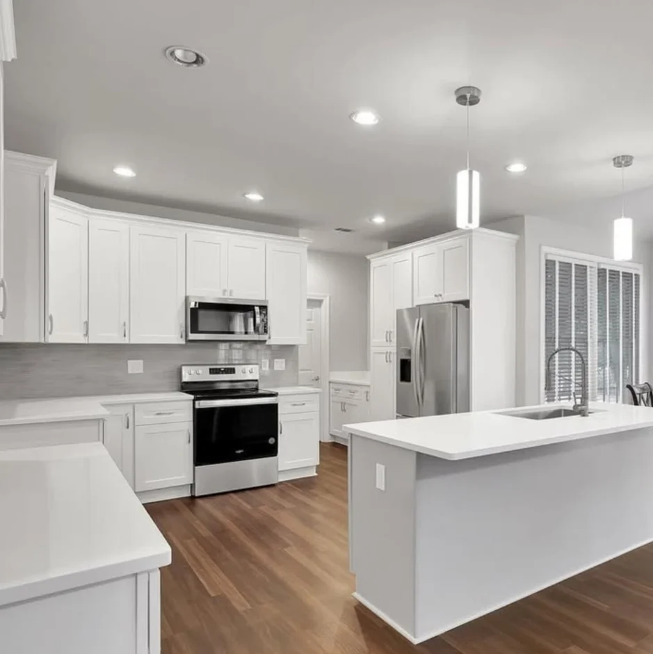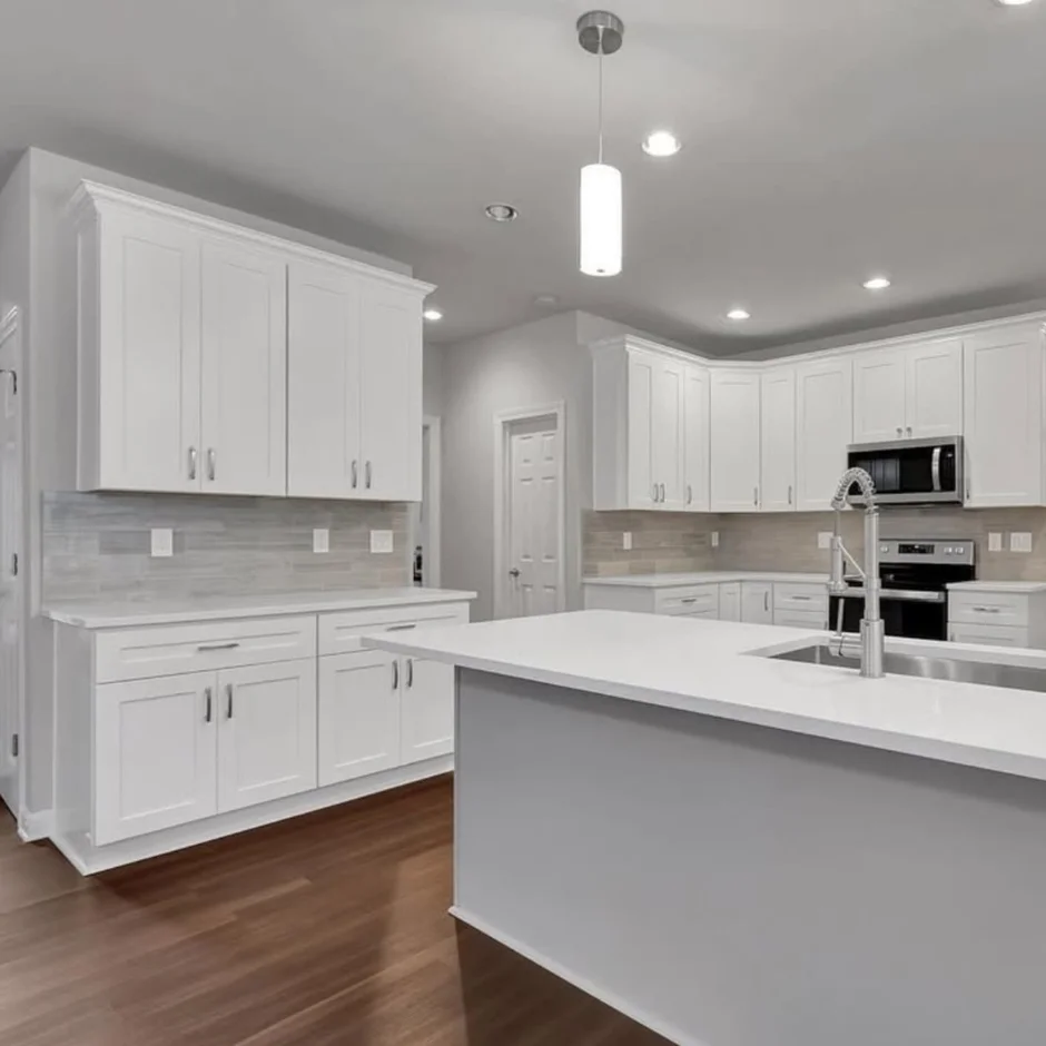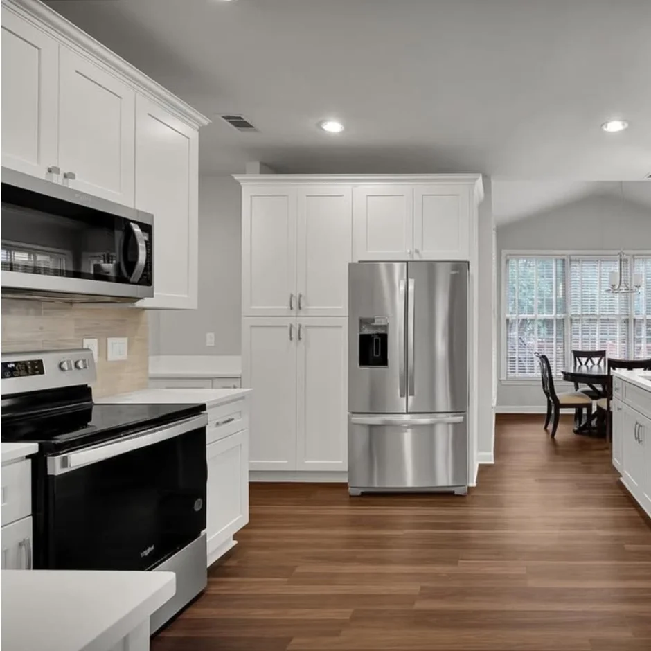 In this project, our team completed a full kitchen renovation focused on creating a bright, timeless, and highly functional space. The design features classic white cabinetry, clean lines, and a spacious layout centered around a large kitchen island, making it ideal for both everyday use and entertaining.