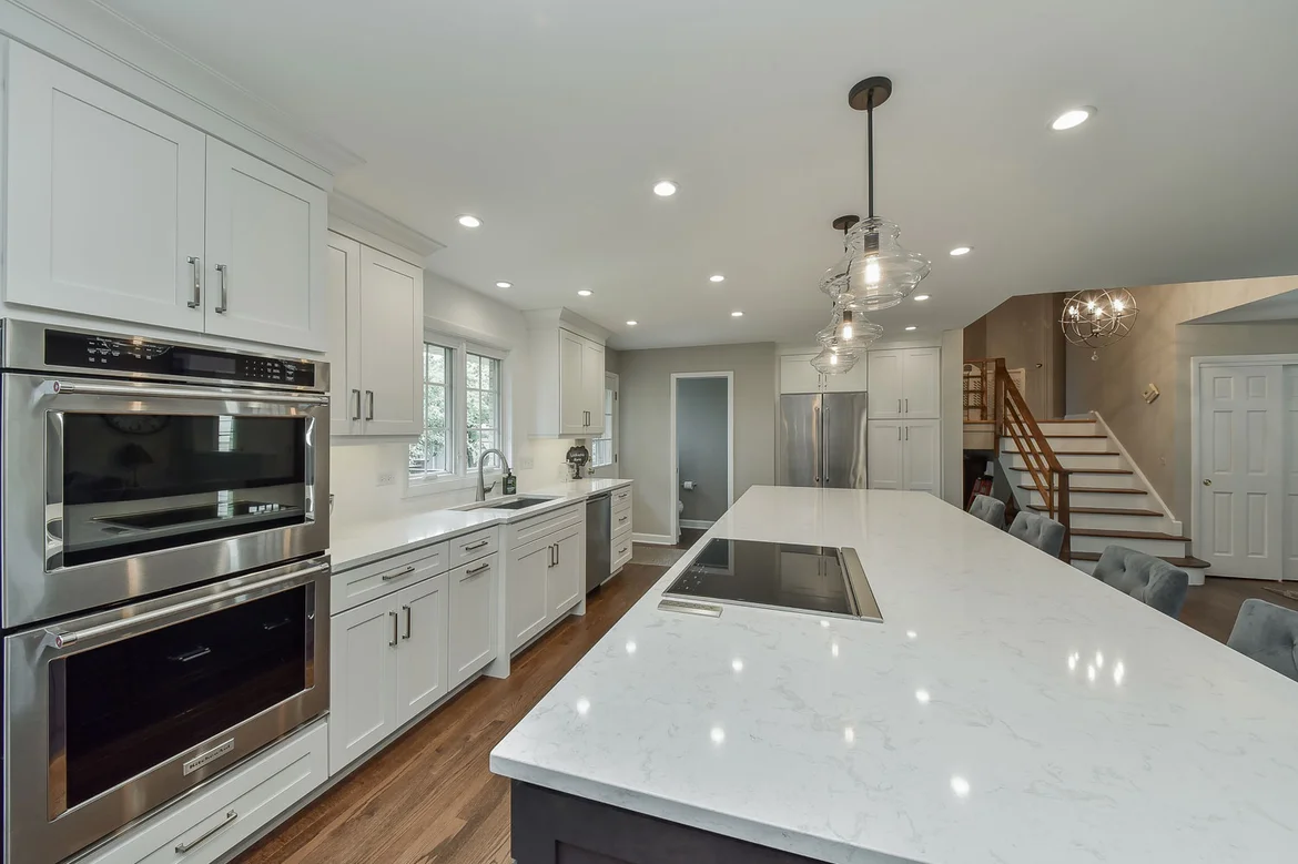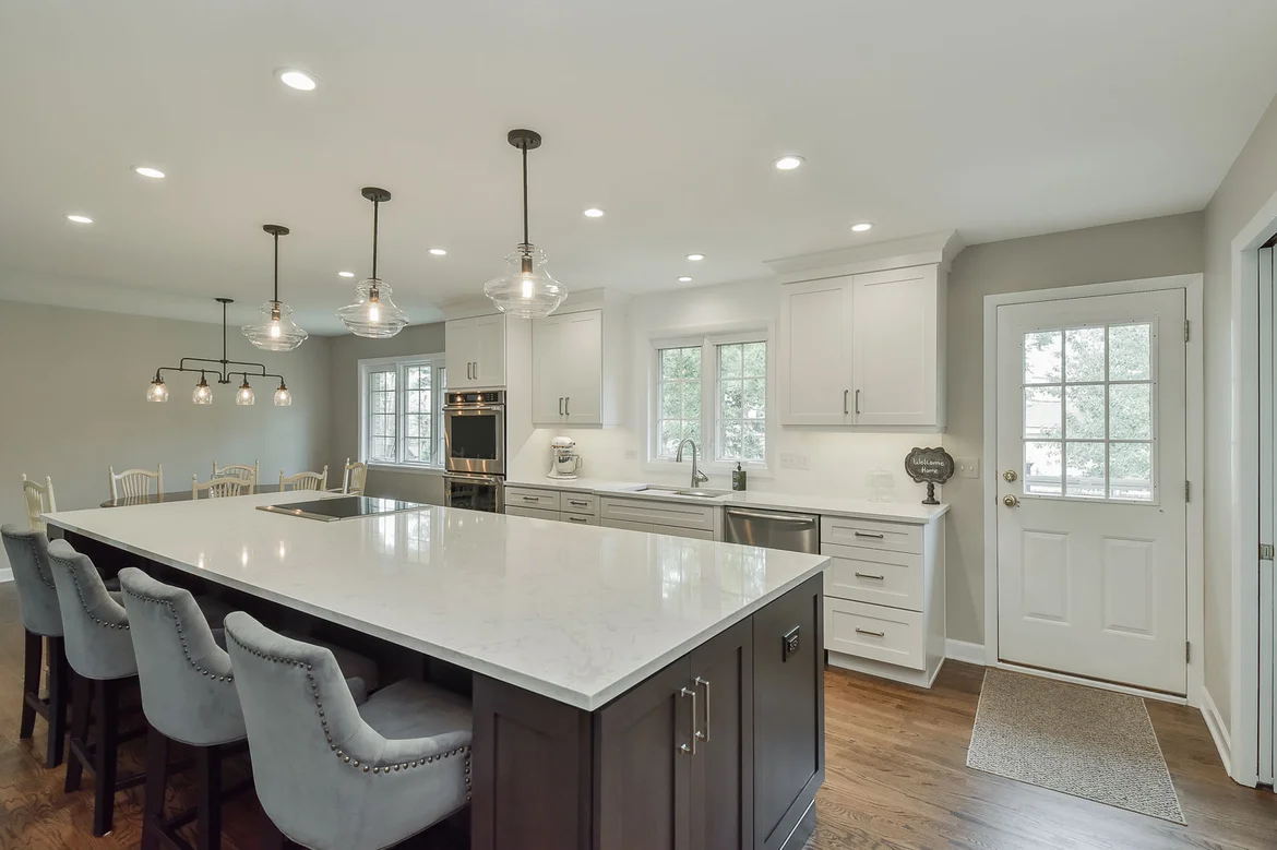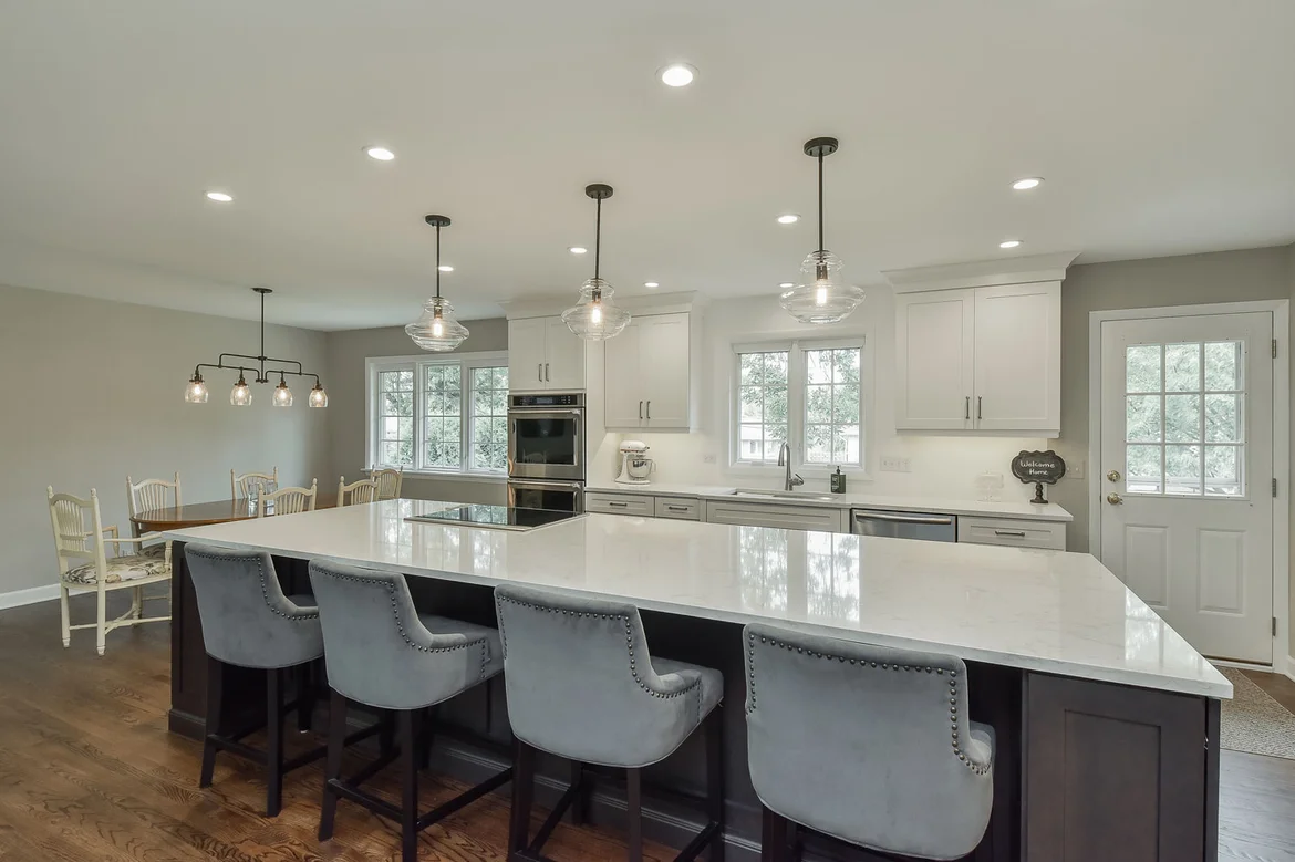 Reconfigured the kitchen layout, allowing for a large central island and improved circulation.
