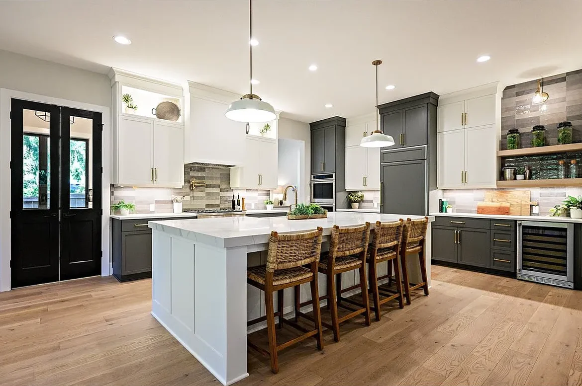 To complete the remodel, new hardware, bar stools, shelving décor, plants, and organizational elements were added. These finishing touches unify the space and enhance its inviting, contemporary atmosphere.