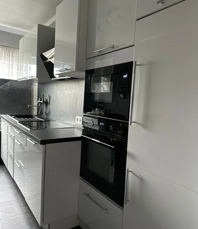 Built a contemporary kitchen with sleek cabinetry, integrated appliances, and durable worktops. The layout emphasizes efficient workflow and clean visual lines. -