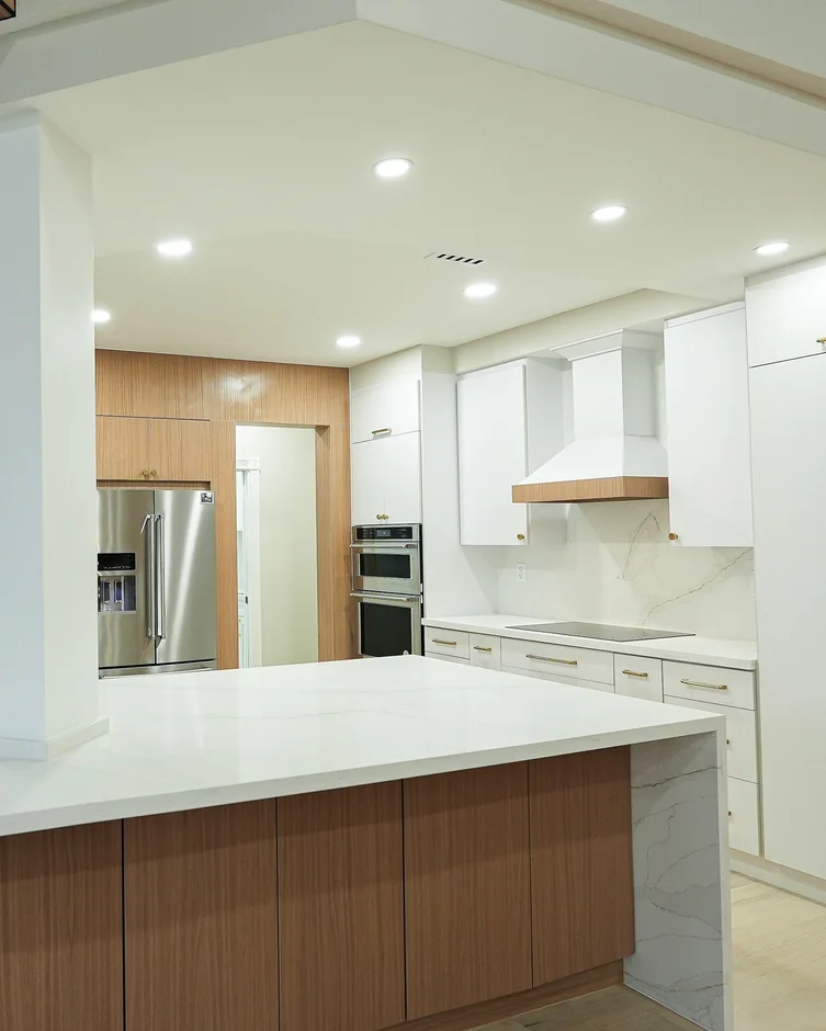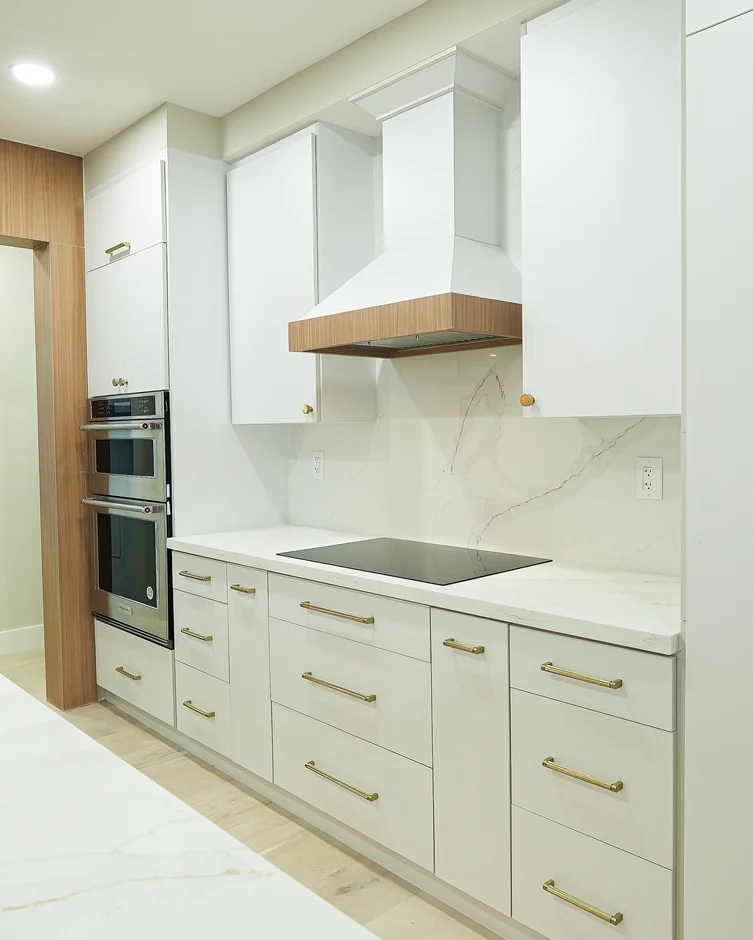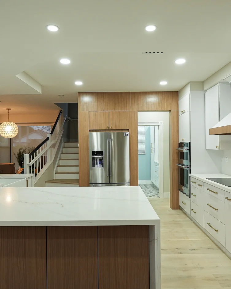 This kitchen renovation emphasizes functionality, clean geometry, and durable finishes. The space combines custom millwork, quartz countertops, and integrated appliances to create a cohesive modern kitchen designed for daily use and long-term performance.