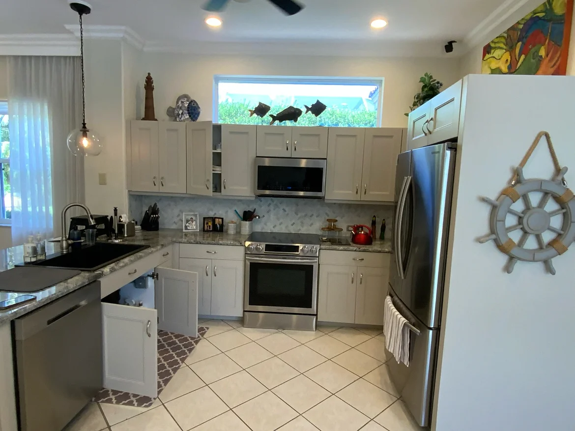 Designed deep drawers, pull-out storage, and soft-close hardware throughout the kitchen to maximize organization, accessibility, and long-term performance. -
