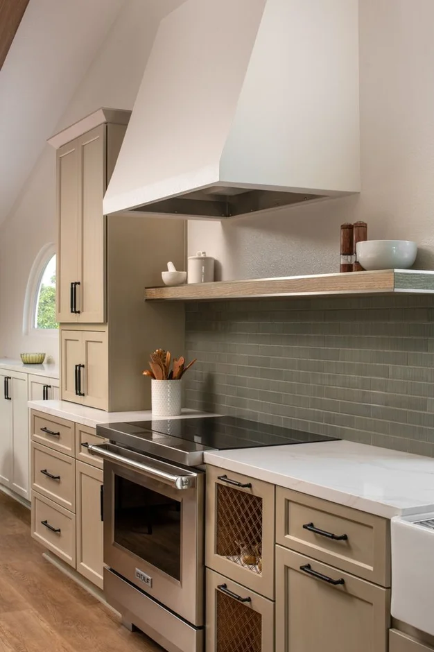 All old cabinets were removed and replaced with custom shaker-style cabinetry in a warm neutral finish. The new layout provides increased storage, soft-close drawers, modern hardware, and improved functionality while maintaining a timeless aesthetic.