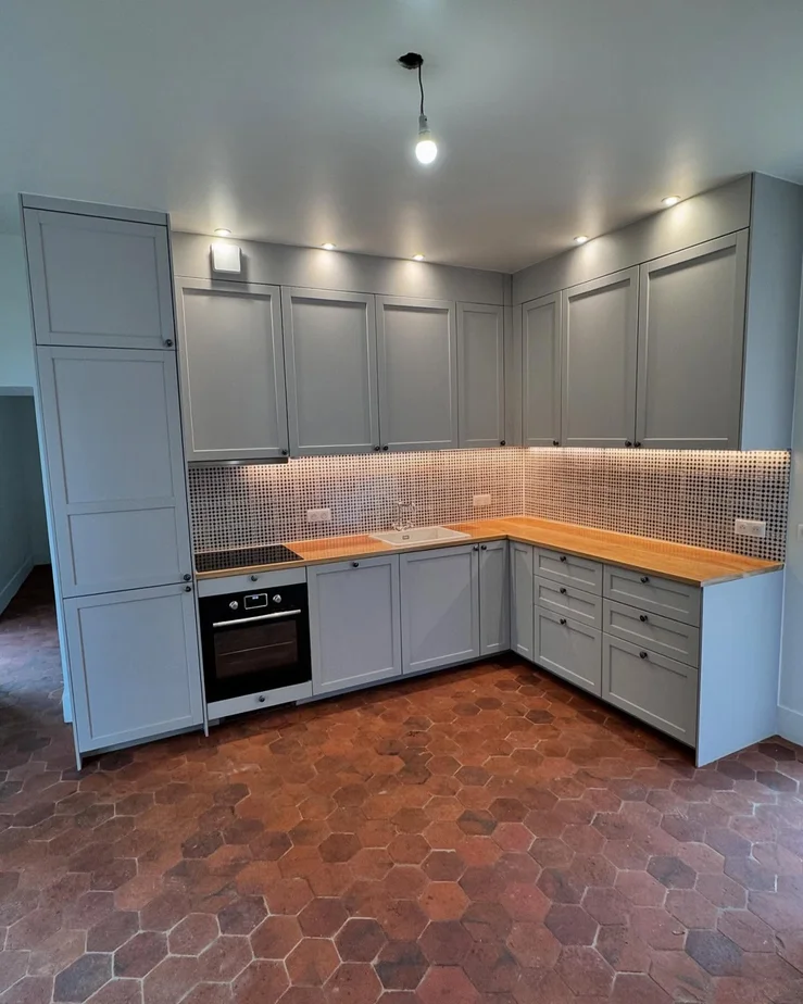 Classic Light Kitchen Renovation with Terracotta Flooring