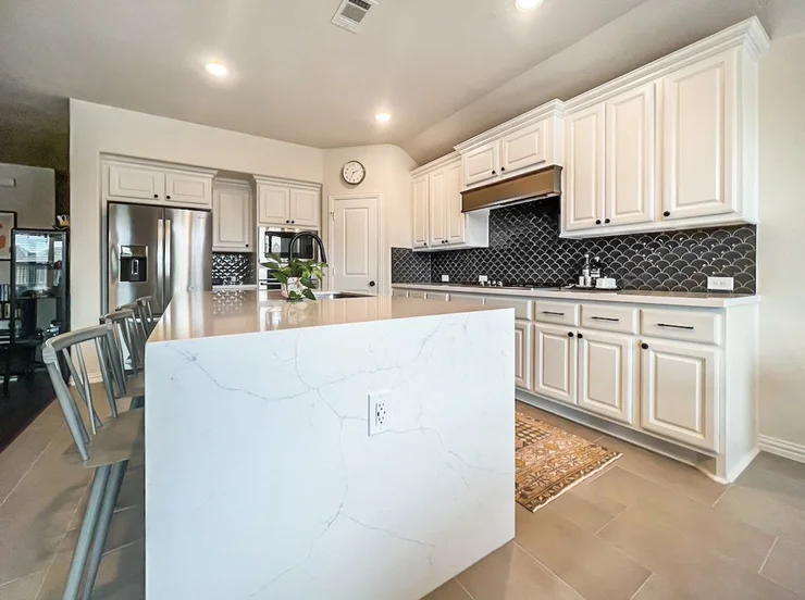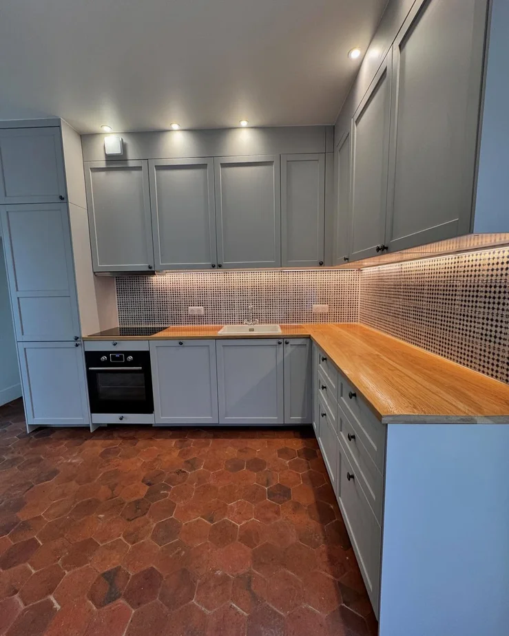 The team transformed an outdated kitchen into a functional and stylish space. Cooking at home is finally enjoyable.