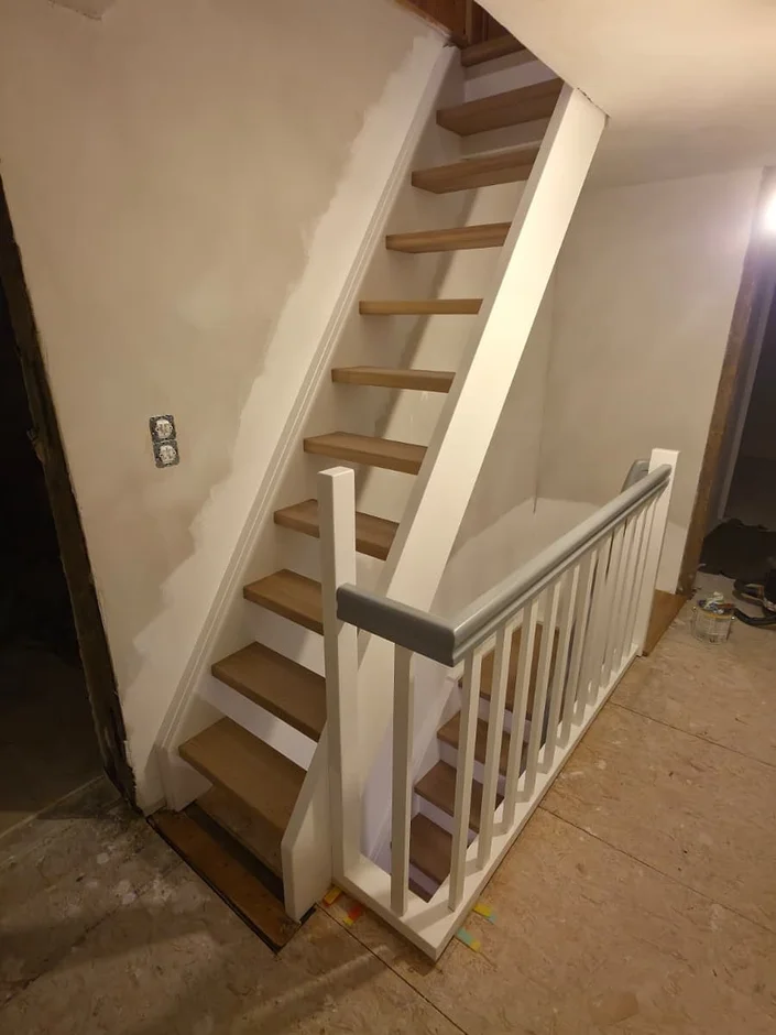 This project features a fully renovated interior staircase combining modern craftsmanship with warm natural materials. The design focuses on safety, durability, and visual flow, transforming the staircase into a clean architectural element that integrates seamlessly with the surrounding interior.