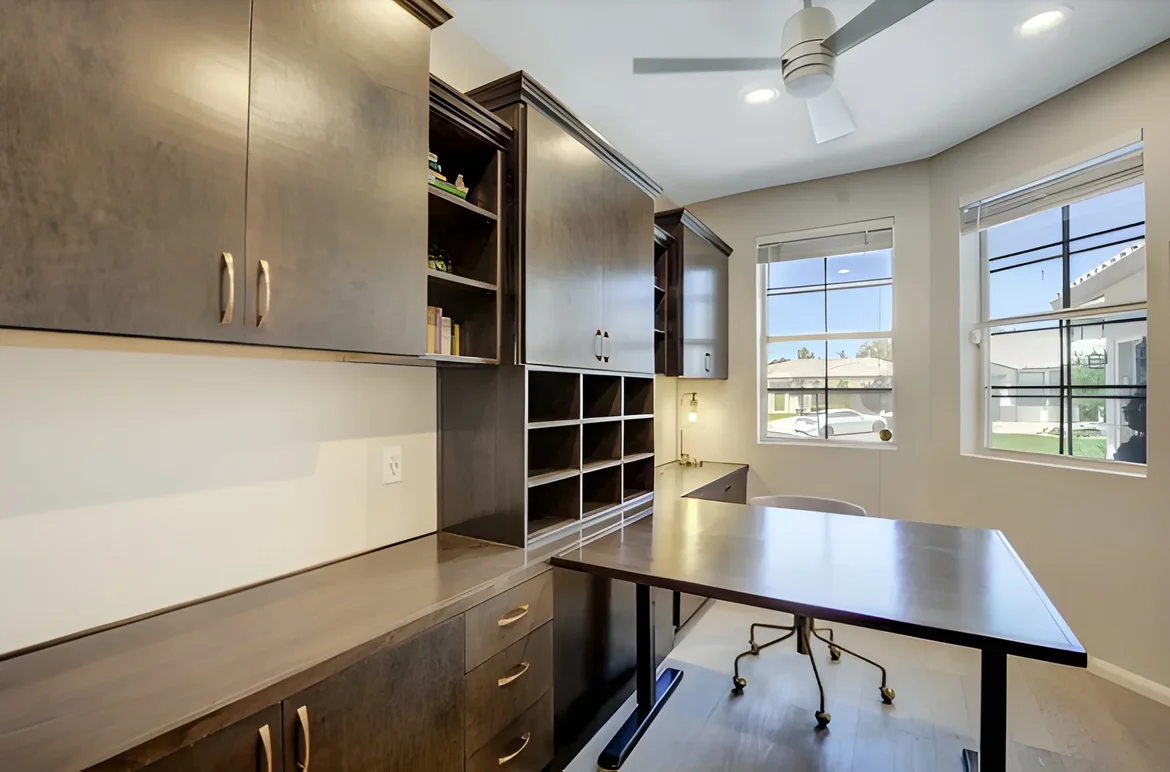The remodeled office is now a polished, organized, and highly functional workspace. Custom cabinetry, thoughtful layout planning, and balanced finishes create a professional yet welcoming environment ideal for productivity, focus, and everyday work from home.