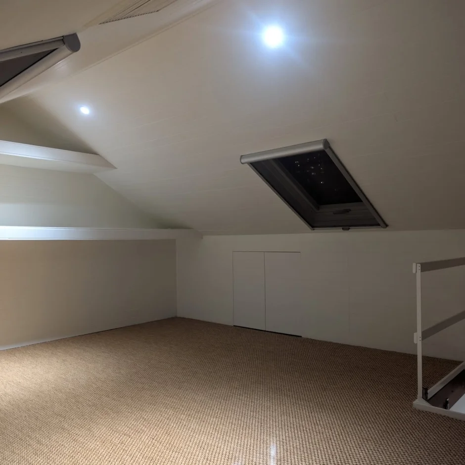 Utilized existing roof windows to bring in abundant daylight, ensuring balanced natural illumination and maintaining a strong connection to the outdoors. -