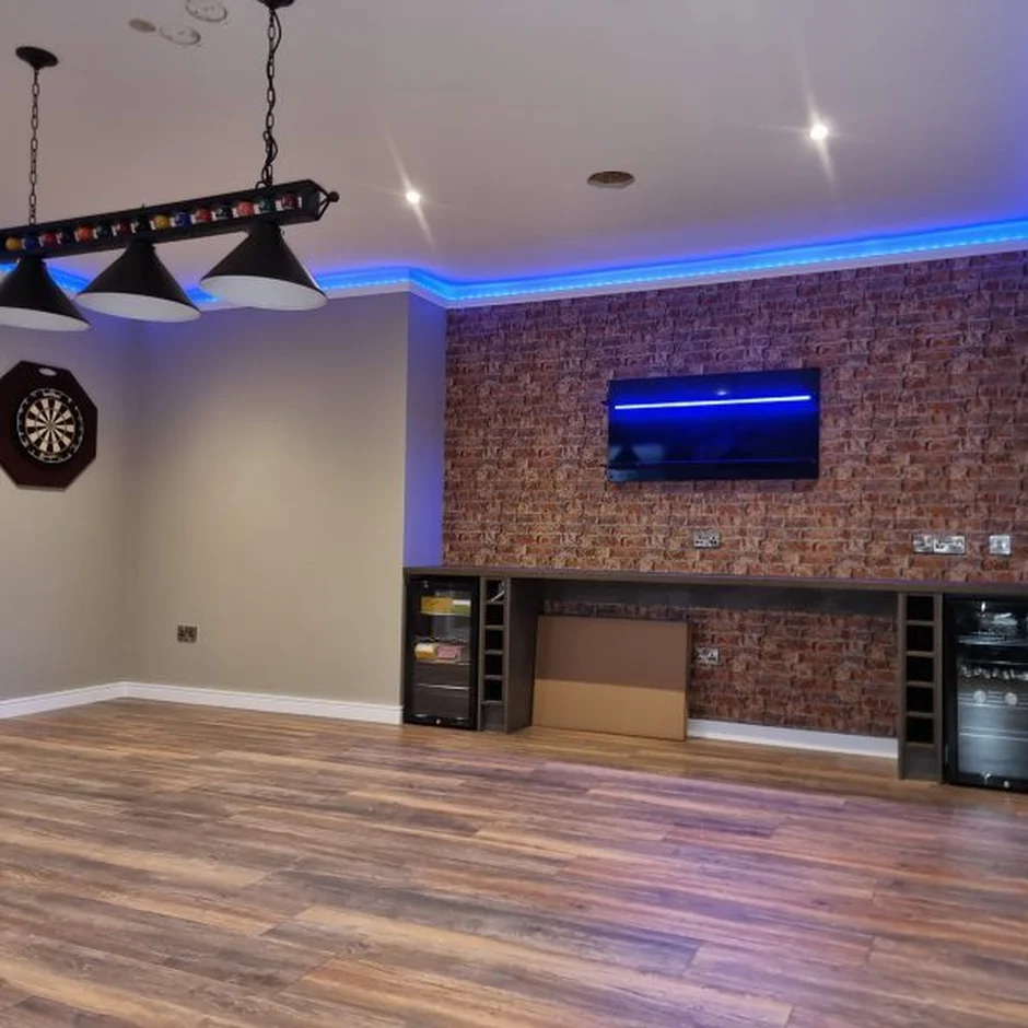 This project focused on transforming an outdated, unused garage into a fully functional and stylish living space. The original structure featured bare block walls, an old concrete floor, and minimal lighting. Our goal was to convert the area into a bright, comfortable, and modern room that could serve as a multipurpose extension of the home — whether as a lounge, entertainment space, or guest room.