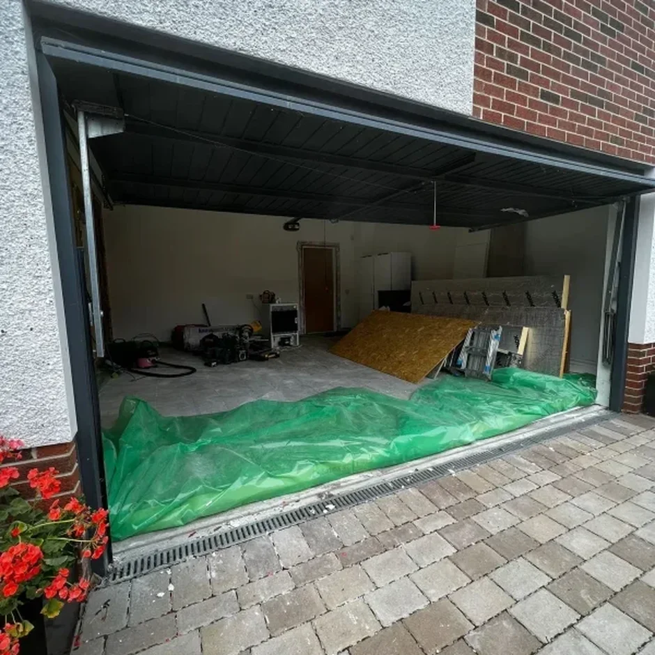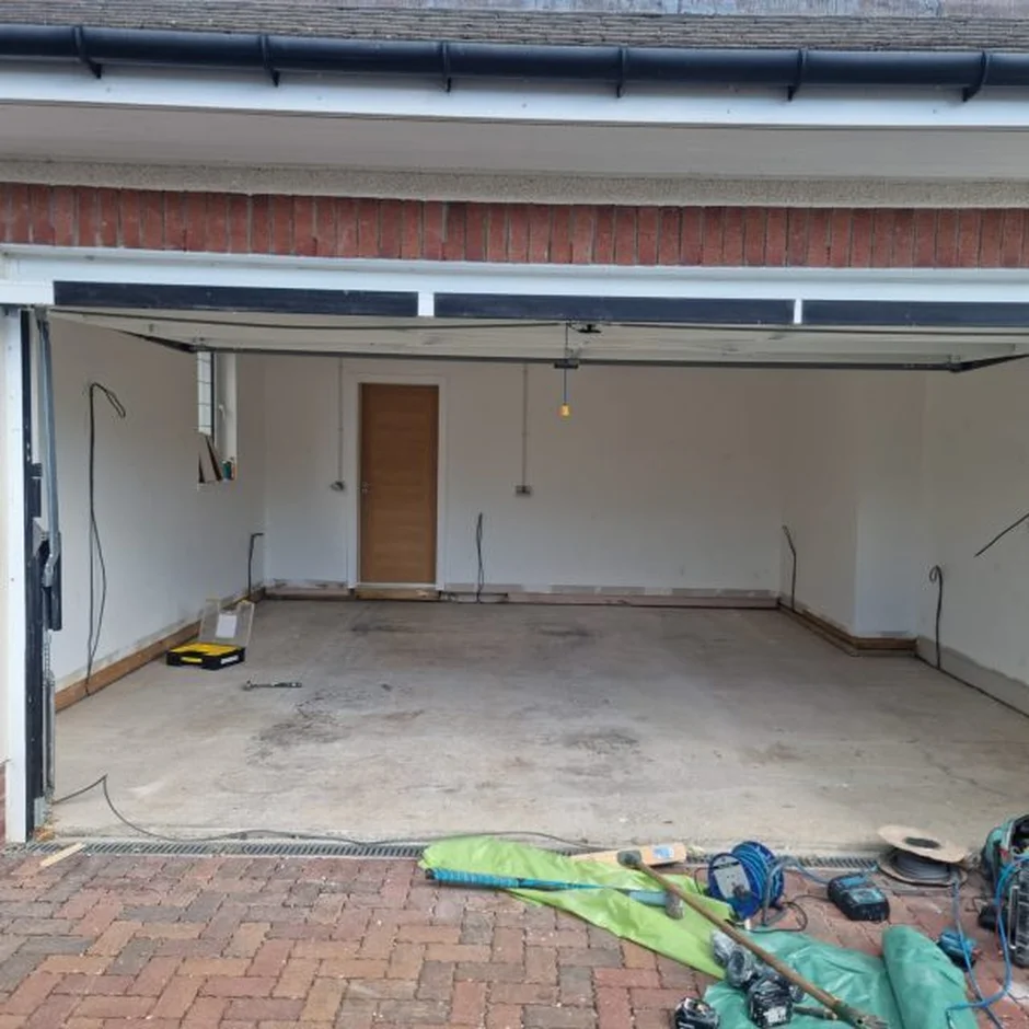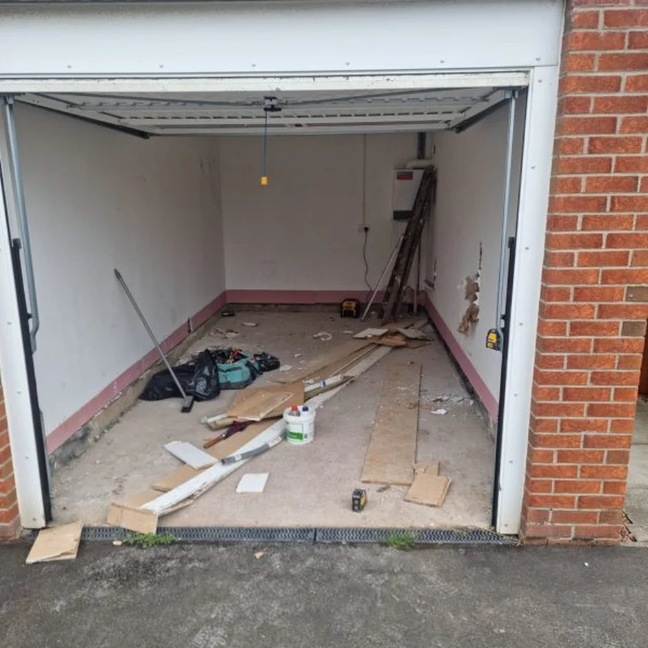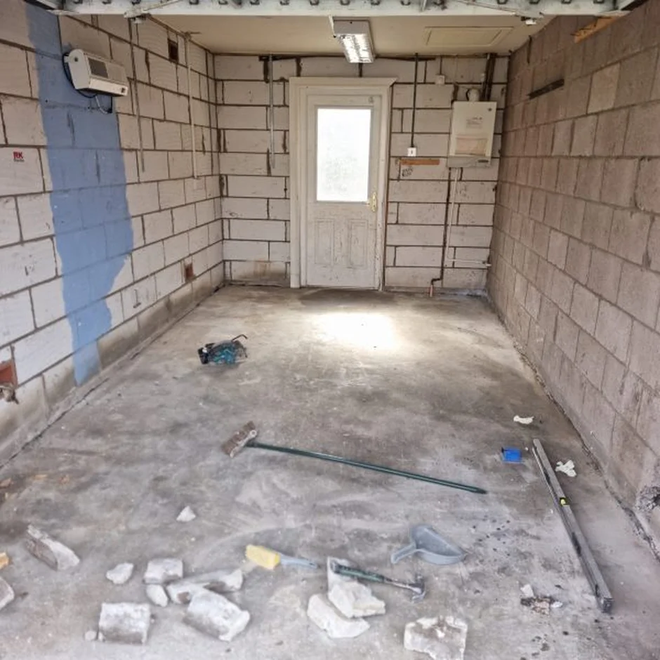 Complete Strip-Out: Removed all old fixtures, wiring, and unnecessary garage elements to prepare for a full renovation.