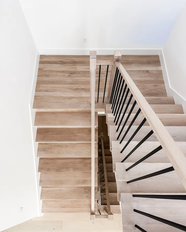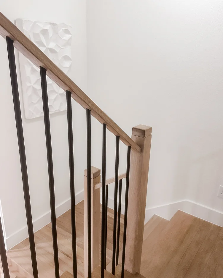 This project involved the construction of a clean, modern interior staircase designed to feel open, light, and architecturally balanced. Natural wood elements were combined with slim metal balusters to create a durable staircase that integrates seamlessly into the surrounding residential space.